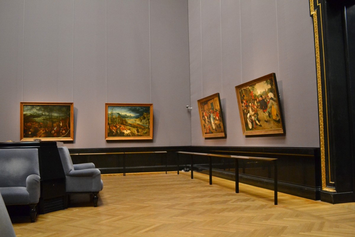 I visited in November, on an overcast Sunday, just before noon. The museum was not very busy. In fact, for brief moments I was alone in Room X, not even a museum guard in casual surveillance. Just me and Hunters in the Snow and Peasant Dance and Tower of Babel. Just me and Bruegel's 445 year old vision. Oddly, two additional Bruegel Works, the playful Children's Games and the wild Fight Between Carnival and Lent, were in a special room and shared gallery space with a temporary exhibition of work by Ed Ruscha, a somewhat incongruous pairing. But no matter.